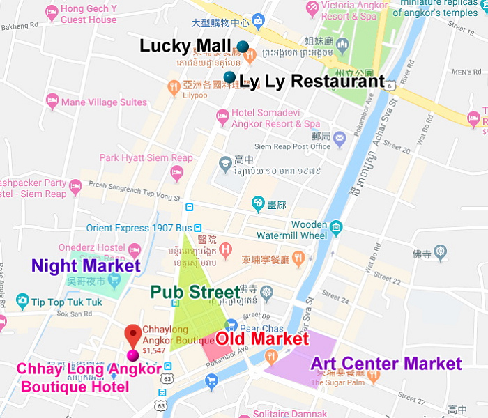 採購各式紀念品一直是我們出國旅遊的必做事項,為了購物、逛街、覓食方便,這趟吳哥之旅安排入住在鄰近各大夜市及市集的「查隆吳哥精品酒店」(Chhay Long Angkor Boutique Hotel),方便我們在一天行程之後還能踩著夜色悠閒地走去逛街。為了滿足我跟娘親的購物慾,旅程的最後一天早上直接空下來到「老市場」(Old Market)、「幸運購物中心」(Lucky Mall)、「吳哥藝術學校」(Artisans Angkor)走走,買到最後一刻才搭機回台。