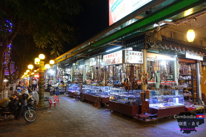離開老市場再走過一座橋,就會抵達「吳哥藝術夜市」(Art Center Market),這裡販售的品項與老市場大同小異,但多了一些手工藝品,像是畫作、木雕、手工香皂等,買東西時一樣不能忘了殺價。晚上吹著涼風、悠閒地在這邊逛街,河畔還有各式小吃攤任君挑選,相當愜意。