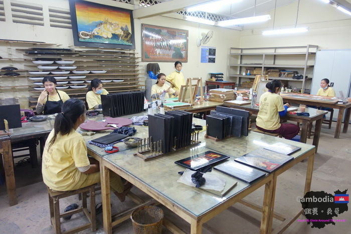 離開吳哥窟的那天還有些空閒時間,我們散步到入住旅館附近的「吳哥藝術學校」(Artisans Angkor)逛逛,這裡是法國文教組織與柬埔寨政府聯合設立的藝術學校,目的是訓練柬埔寨的青年在此學習一技之長,也開放讓一般遊客來此選購藝術品,包括版畫、木雕、石雕、絹畫等等,雖然價錢較高,但非常有質感。